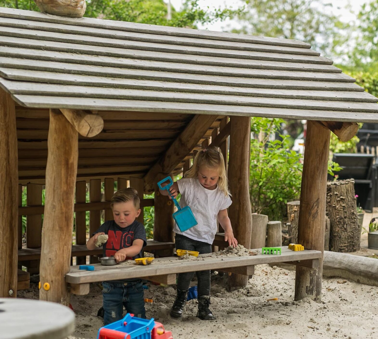 πŸͺ£ Een zandbak met speelhuis – voor graven, bouwen en rollenspel